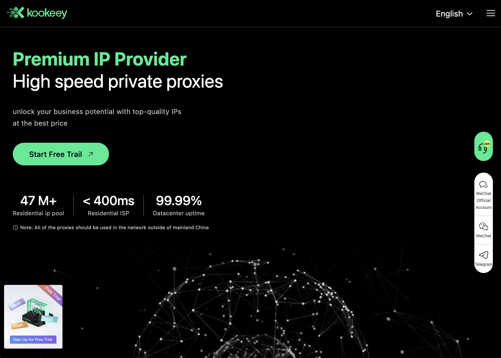 Not subtle. KKOIP is a front for Kookeey, a commercial residential proxy provider out of China. Kookeey sells access to over 47 million residential IPs across 190 countries, offering SOCKS5, HTTP/S, the works: